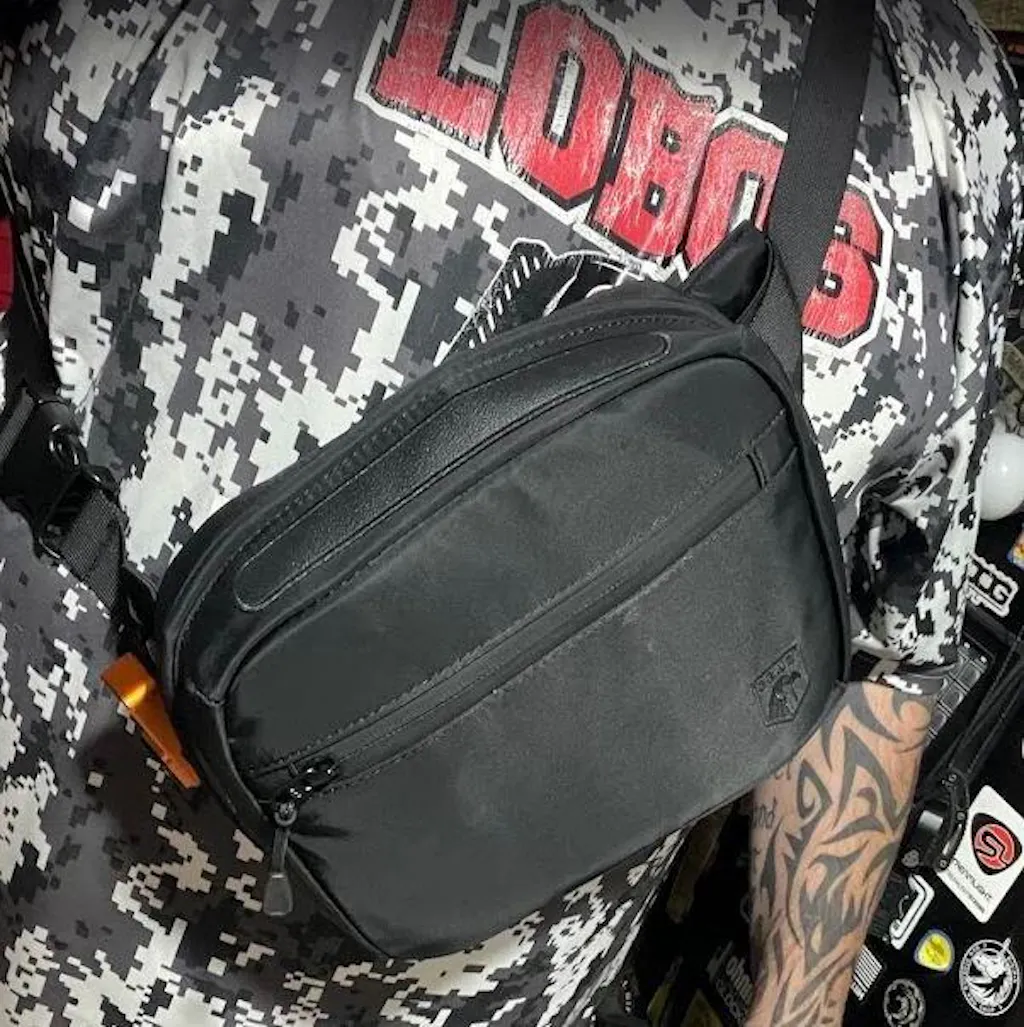 While the Renegade is designed to conceal carry a firearm, it also features two accessory pockets for everyday items. The phone pocket is located on the backside and is accessed by pulling a small tab with velcro. The exterior of the back pocket is also lined with Mega Grip MOLLE offering the user utility and grip to the body. The accessory pocket is located on the front of the bag and is accessed by a waterproof zipper.